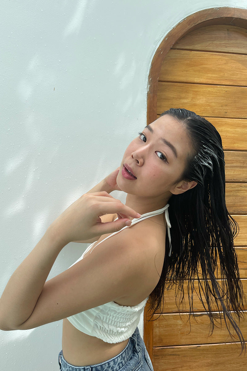 1. หลังสระด้วยแชมพู ชโลมแฮร์มาส์กบนเส้นผมที่เปียกหมาด